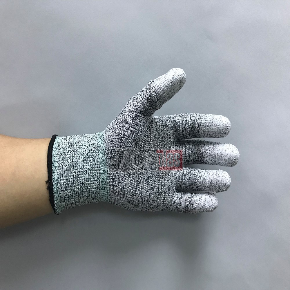 Level 5 cut resistant with carbon knitted and white PU fingertips coating
